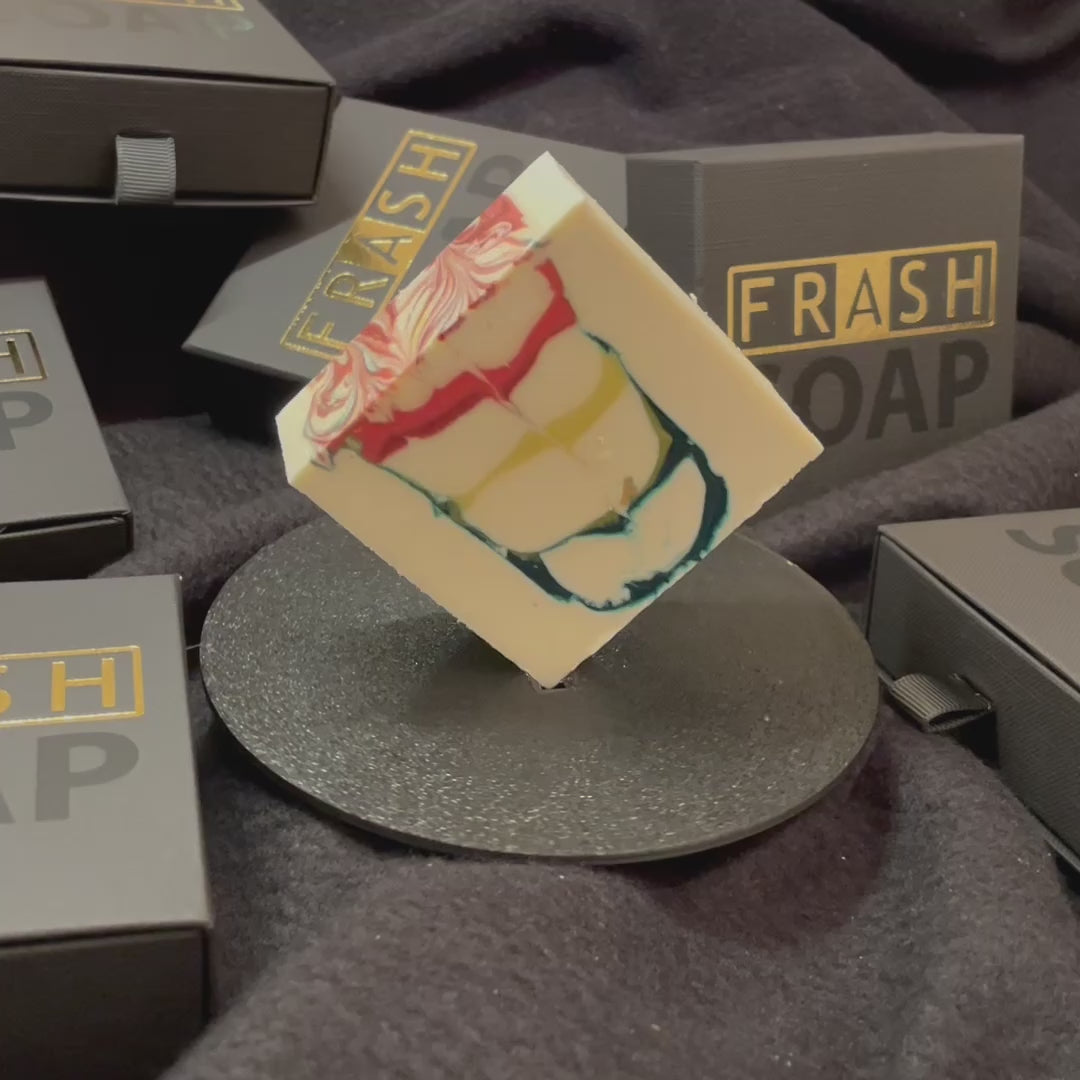 Weiße Naturseife mit floralen Farbakzenten in Grün und Rot, inspiriert von wilden Bergwiesen. In der Handfertigung ist eine schöne Blume leider nicht immer möglich, wir versuchen aber unser Bestes um dem dargestellten Bild so nahe wie möglich zu kommen. Die schiefe Optik soll aber über den genialen floralen Duft und die schonenden und pflegenden Eigenschaften nicht hinwegtäuschen.