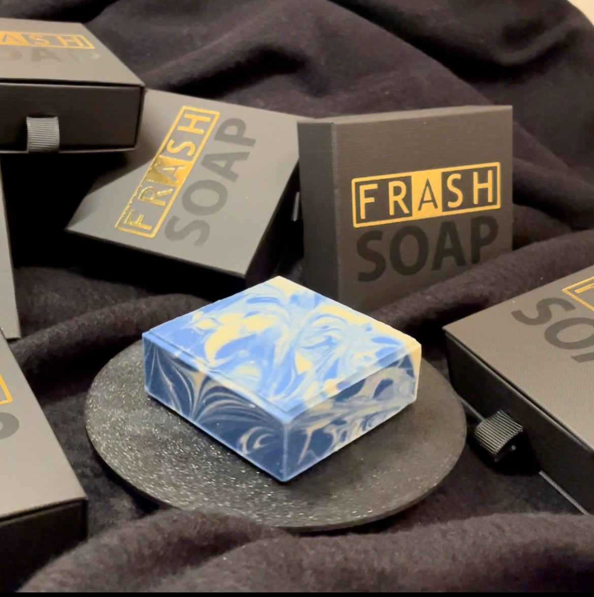 Geniale blau-weiße Marmoroptik, echtes Menthol, ätherisches Krauseminze- und Kiefernadelöl.